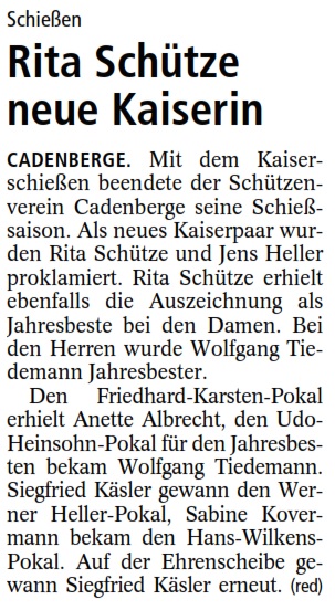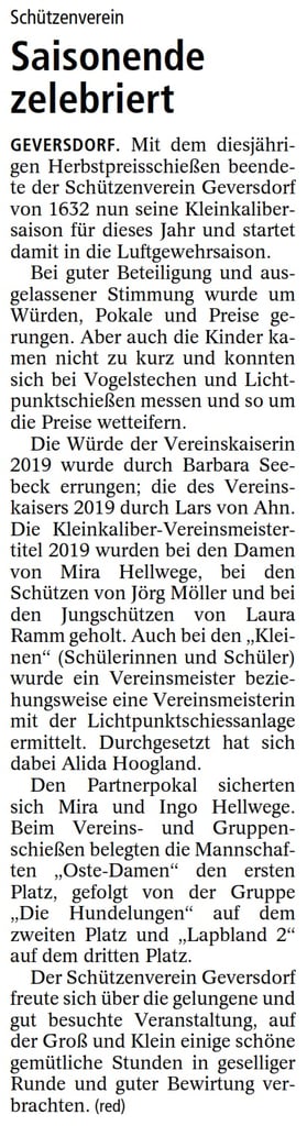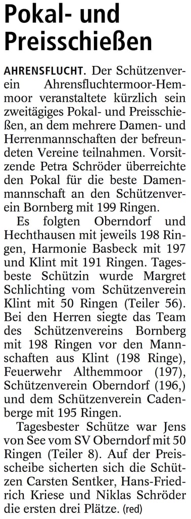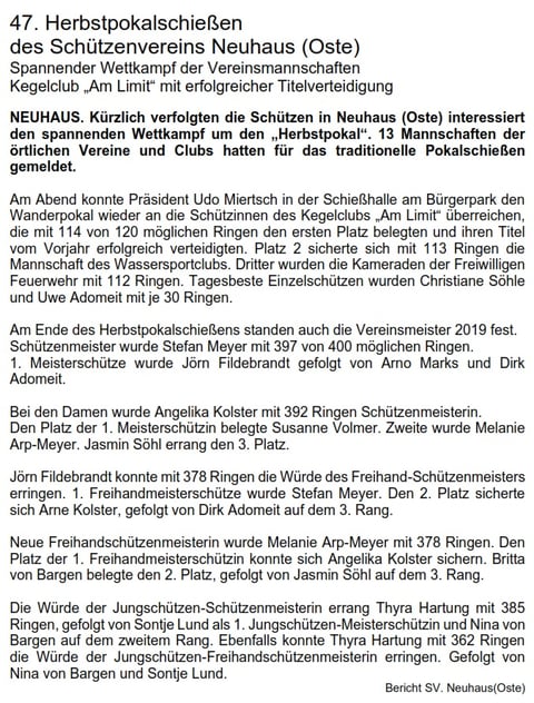Bericht Schützenverein Neuhaus (Oste)