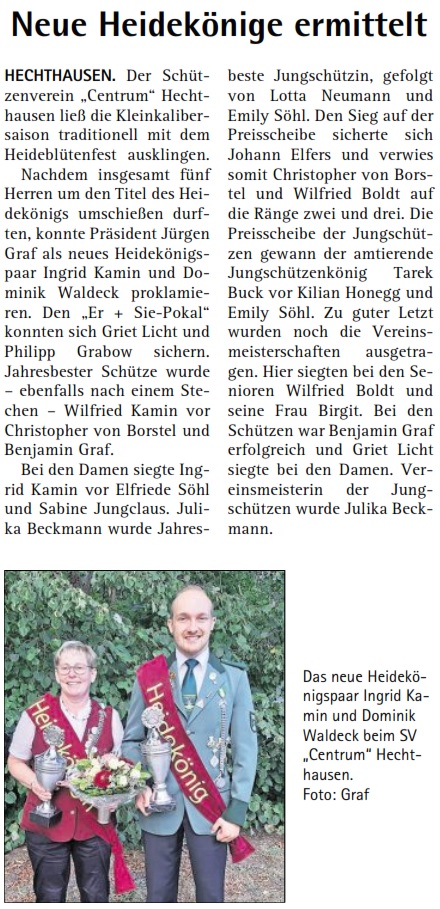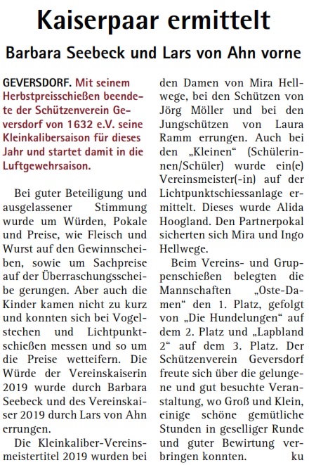 Platz 2 sicherte sich die Mannschaft vom „Brauhaus Alt Neuhaus“ gefolgt von der Mannschaft „Aal Hinnerk“ auf Rang drei. Tagesbeste Einzelschützen wurden Sabine Miertsch und Robert Finkeldey.