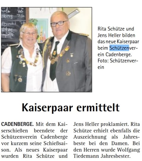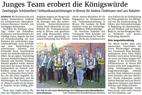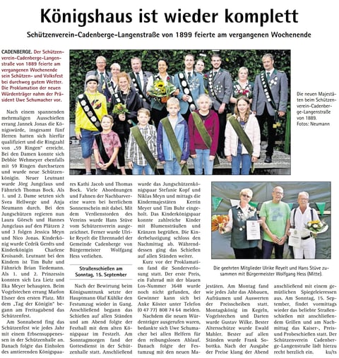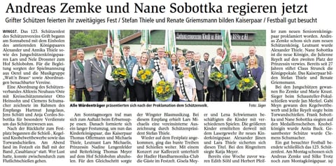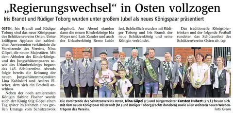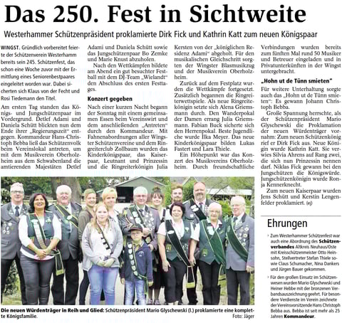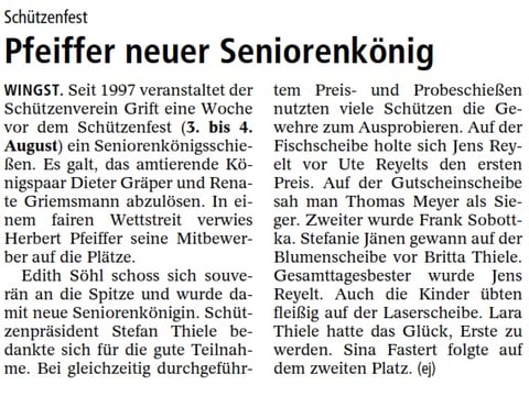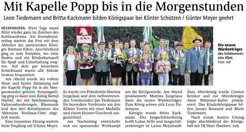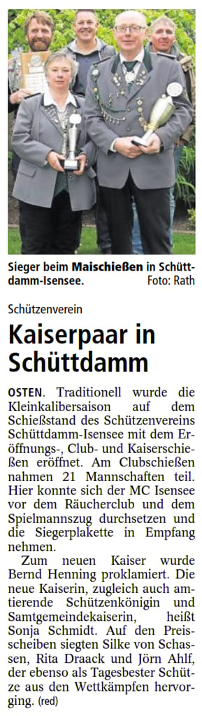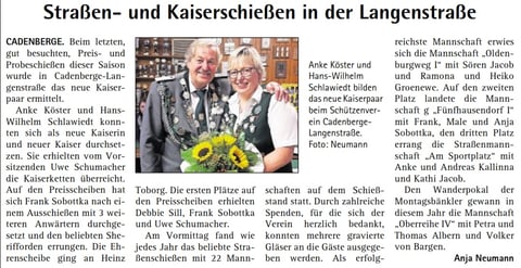 Hendrik Mahler war hier erfolgreich und schoss sich zum König. Leutnant wurde Michael Hinck. Zum Fähnrich schoss sich Jörn Katt.