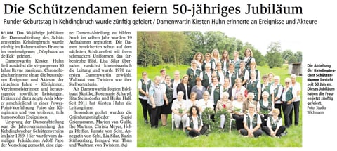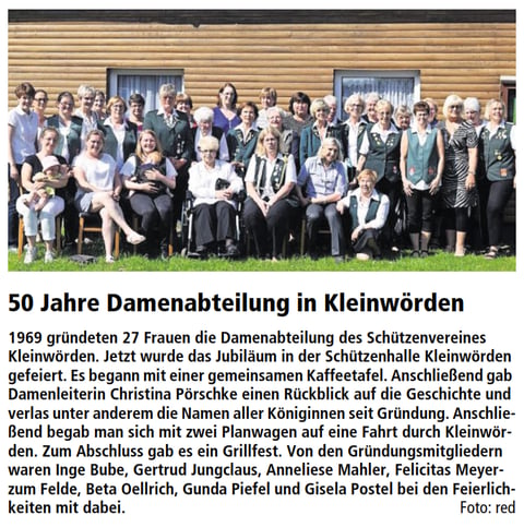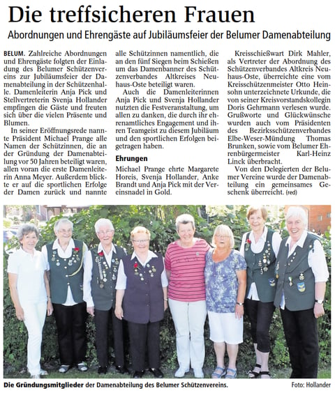 BELUM. Der Schützenverband Altkreis Neuhaus-Oste e.V. bekam vom Schützenverein Belum von 1897 e.V. eine Einla-dung zu der 50 Jahr-Feier der Damenabteilung.