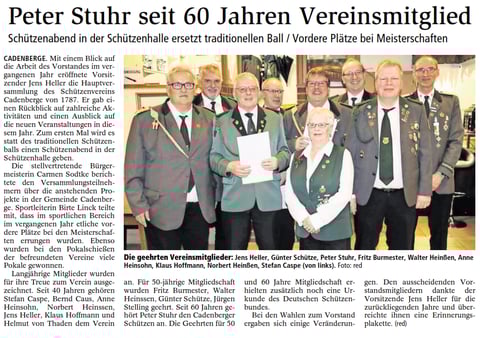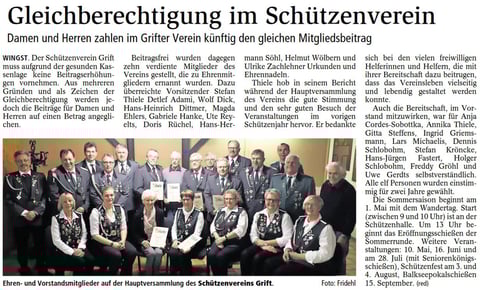 Die langjährige Leiterin der Damenabteilung Jutta Heidhoff schied aus dem Vorstand aus und erhielt als Dank für ihre herausragenden Leistungen die Verdienstmedaille des Vereins. Als Nachfolgerin wurde die bisherige 2. Damenobfrau Susanne Volkmer gewählt. Zur neuen 2. Damenobfrau wählte die Versammlung Susanne Lühmann in den Vorstand. Auch bei der Leitung der Kinderabteilung gab es Veränderungen.