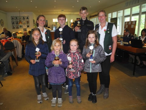 Die siegenreichen Kinderschützen mit den Leiterinnen der Kinderabteilung Angelika Kolster und Jenny Thiems.
