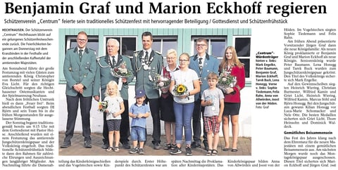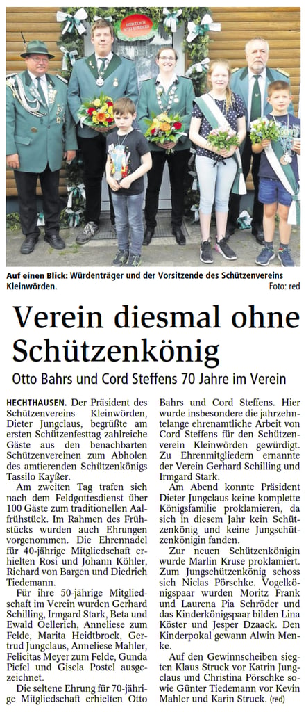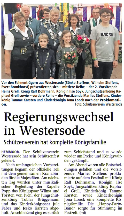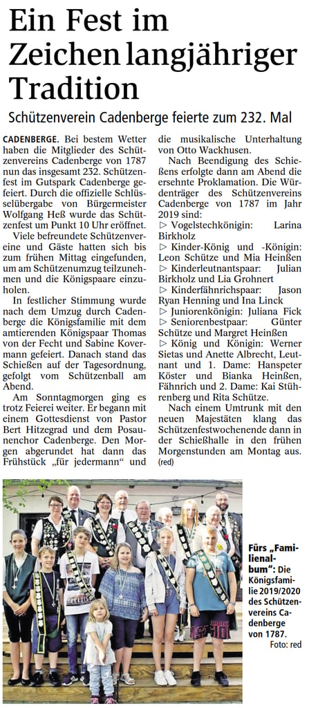 Lea Behrens konnte ihre Königswürde erfolgreich verteidigen und wurde zum zweiten Mal in Folge Kinderkönigin. Zum Kinderleutnant schoss sich Michelle Lüke. Kinderfähnrich wurde Hannah Kolster.