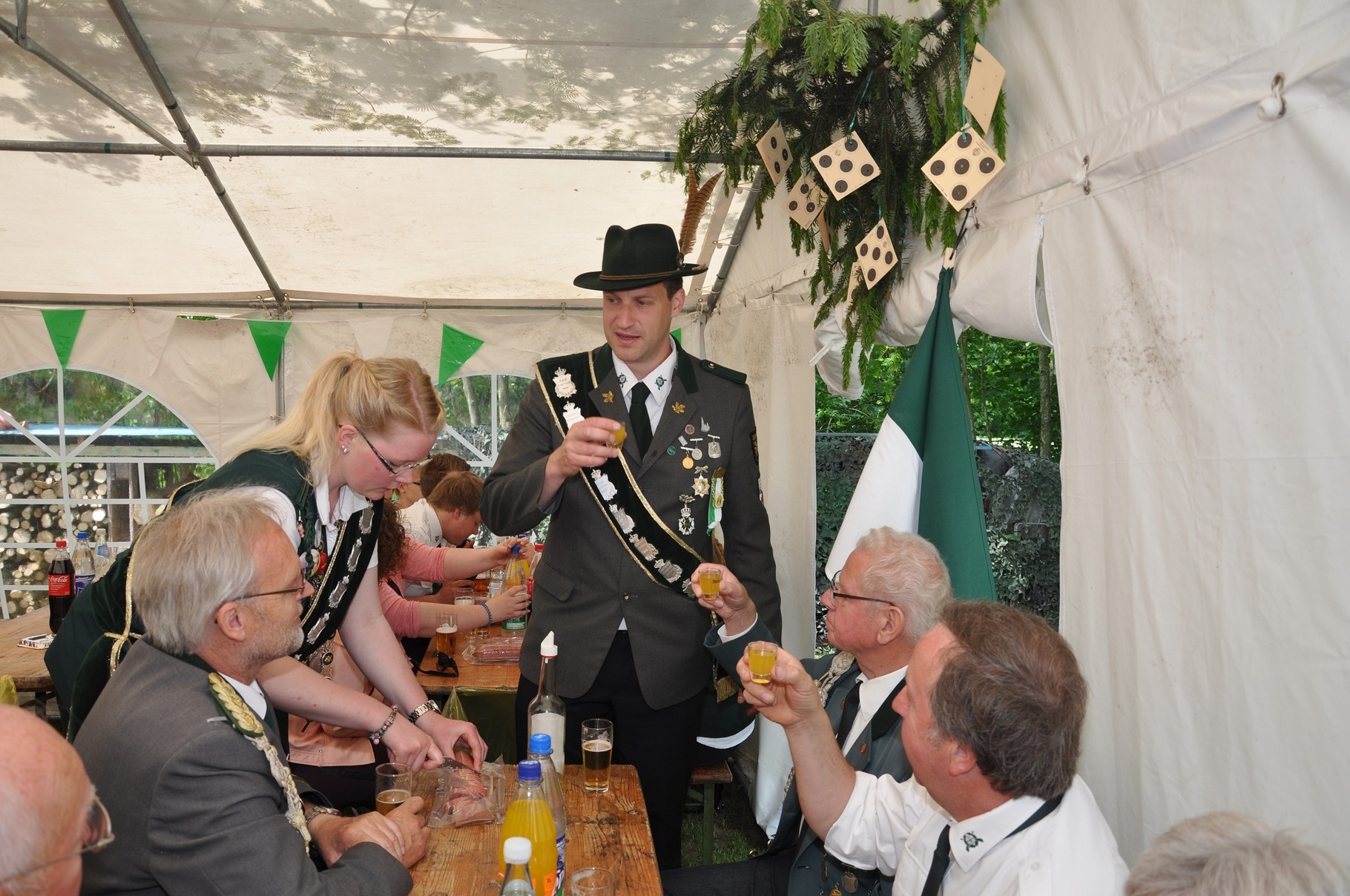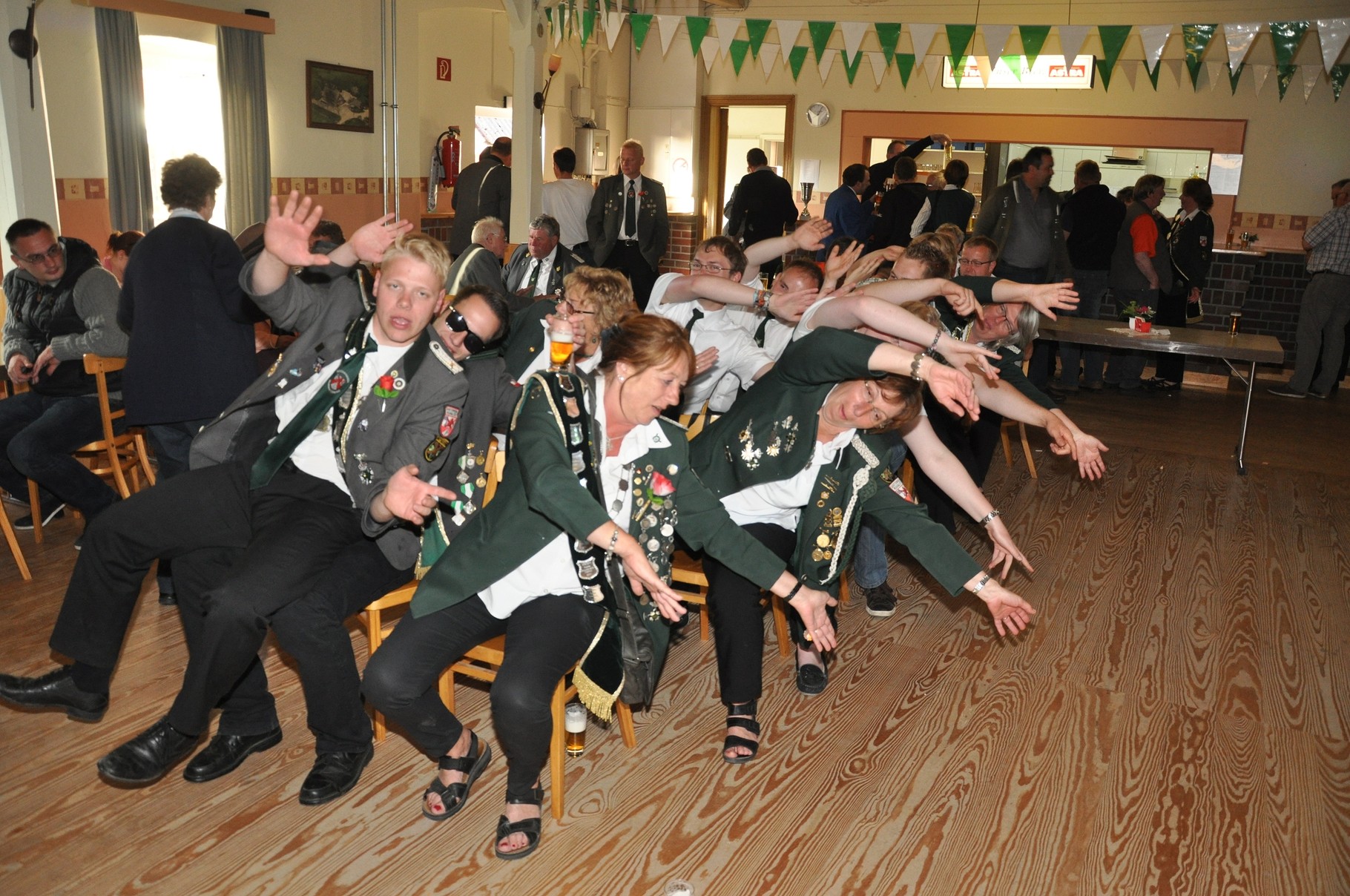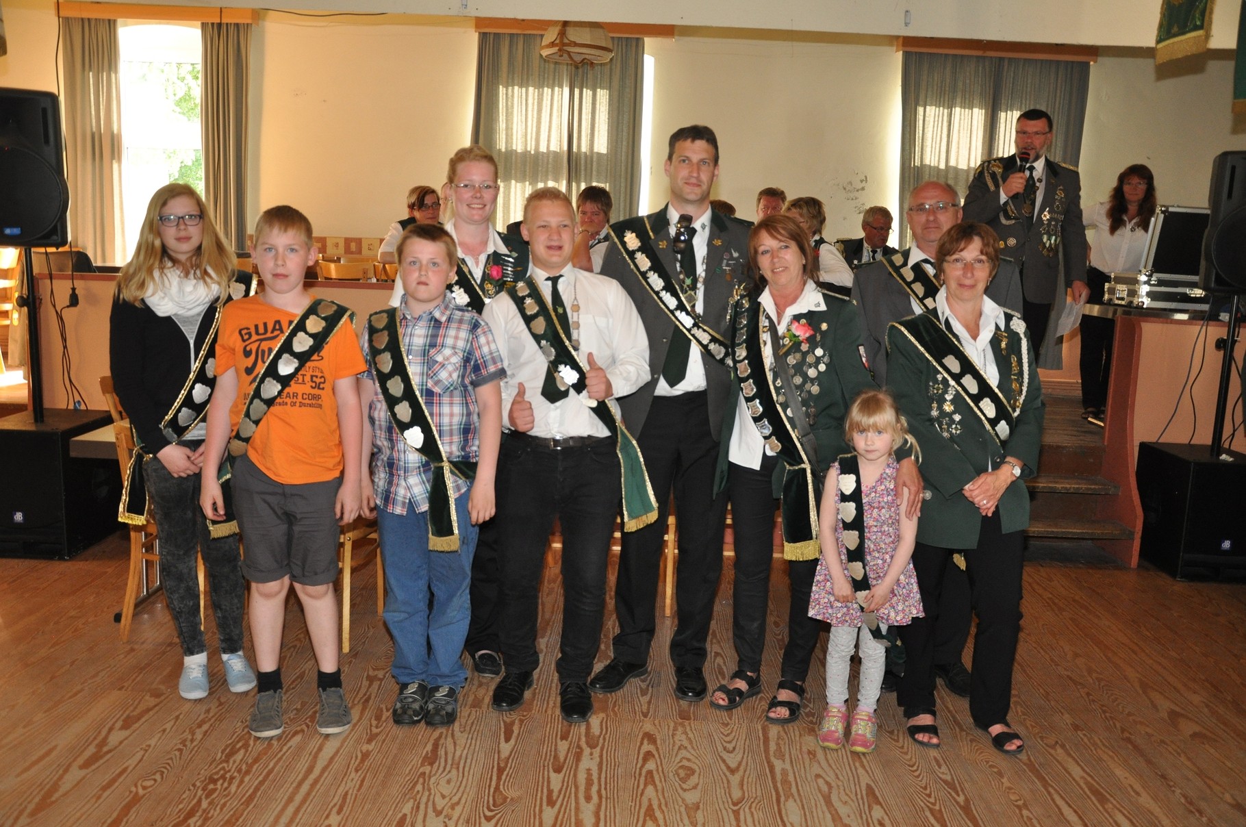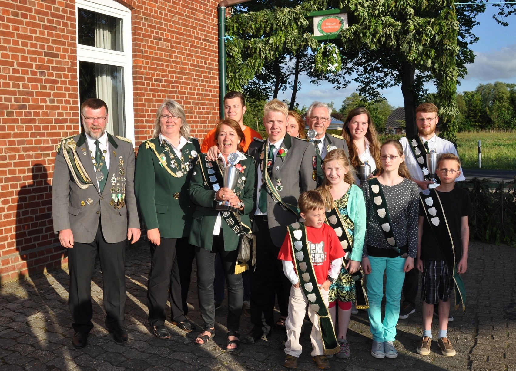 Nach der Begrüßung der Gäste und der Flaggenhissung in der Schießanlage am Gutspark führte der Festumzug zunächst zur Einreihung des Kinderkönigs. Weiter ging es vorbei an den Altenwohnungen, wo die Musikzüge den dort wohnhaften Senioren zur Freude, ein Ständchen überbrachten. Weiter führte der Marsch an der Residenz der Königin entlang zur Einholung der königlichen Majestäten an der Straße "Am Klotzen".