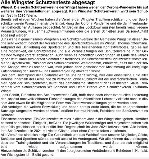 Zu den Kommentaren möchte ich um Missverständnissen vorzubeugen wie folgt Stellung nehmen. Die Formulierung meines Wunsches nach frühzeitiger Information seitens des Schützenverbandes Altkreis Neuhaus ist ausschließlich darauf bezogen, meine Sorge um die konsequente Einhaltung und Umsetzung der bestehenden Richtlinien und Vorgaben im Rahmen der Covid 19 Krise zum Ausdruck zu bringen und dieses auch einheitlich zu kommunizieren und gemeinsam umzusetzen. Die ersten Festtermine stehen unmittelbar bevor und es gilt mehr denn je, zum Schutze aller Beteiligten zeitig und geschlossen zu informieren. Es lag mir fern, mit meinem formulierten Wunsch Kritik am Verband zu üben. Aber auch gerne der Reihe nach.