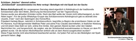 Am 20.04. habe ich mit dem Redakteur der NEZ telefoniert um mit Bedauern die komplette KK Saison abzusagen dann fragte er mich ob ich ihm für ein Interview zum Thema Schützenfest bereit stehe. Ich sagte zu. Danach habe ich direkt mit dem ehemaligen Geschäftsführer des Verbandes telefoniert (den aktuellen wollte ich aus erdenklichen Gründen nicht kontaktieren) um das weitere Vorgehen für eine Auszeichnung zu besprechen und habe ihn auch auf ein einheitliches Vorgehen angesprochen. Er konnte mir leider keine Auskunft geben. Auch der Präsident aus Geversdorf hatte aus Verunsicherung per Mail beim Altkreis angefragt. Dies Ganze kann daher nicht das sein was mir in den bereits vorhandenen Kommentaren vorgehalten wird. Zu den Kommentaren möchte nur kurz erwähnen, das sie leider bis auf einen nur anonym sind (traurig). Außerdem liegt mir das Schreiben des Bezirkssportleiters vor, was an alle angeschlossenen Vereine und dem Präsidum zur Kenntnis gegangen ist. Ich hoffe nun das es ausreichend dargestellt ist.