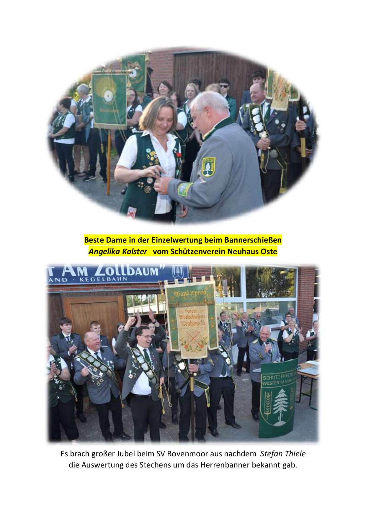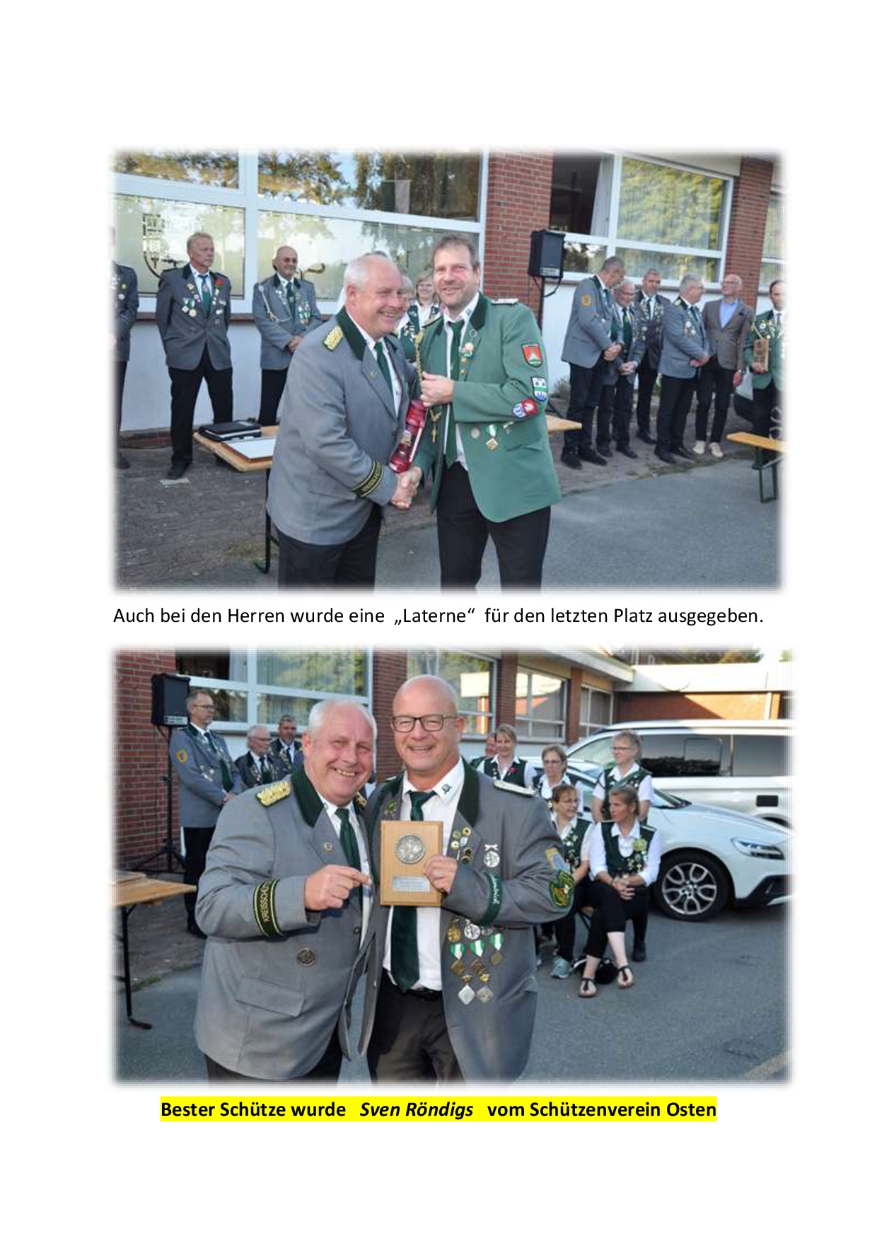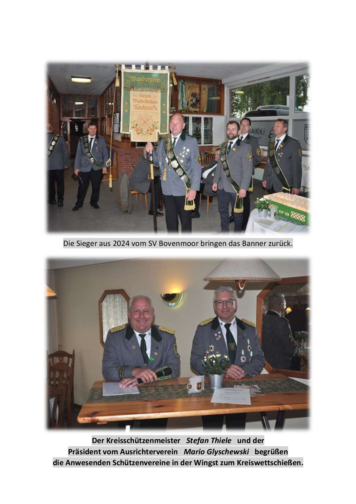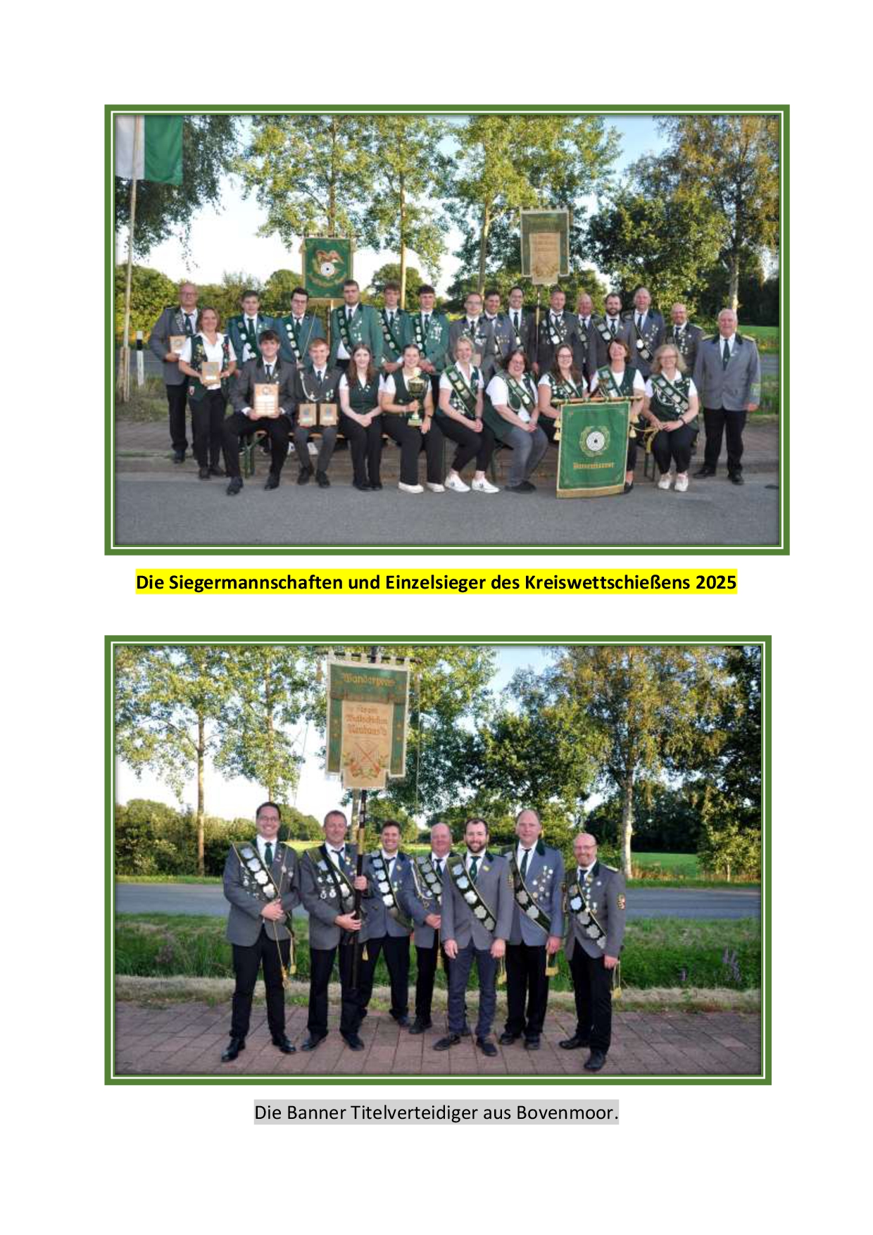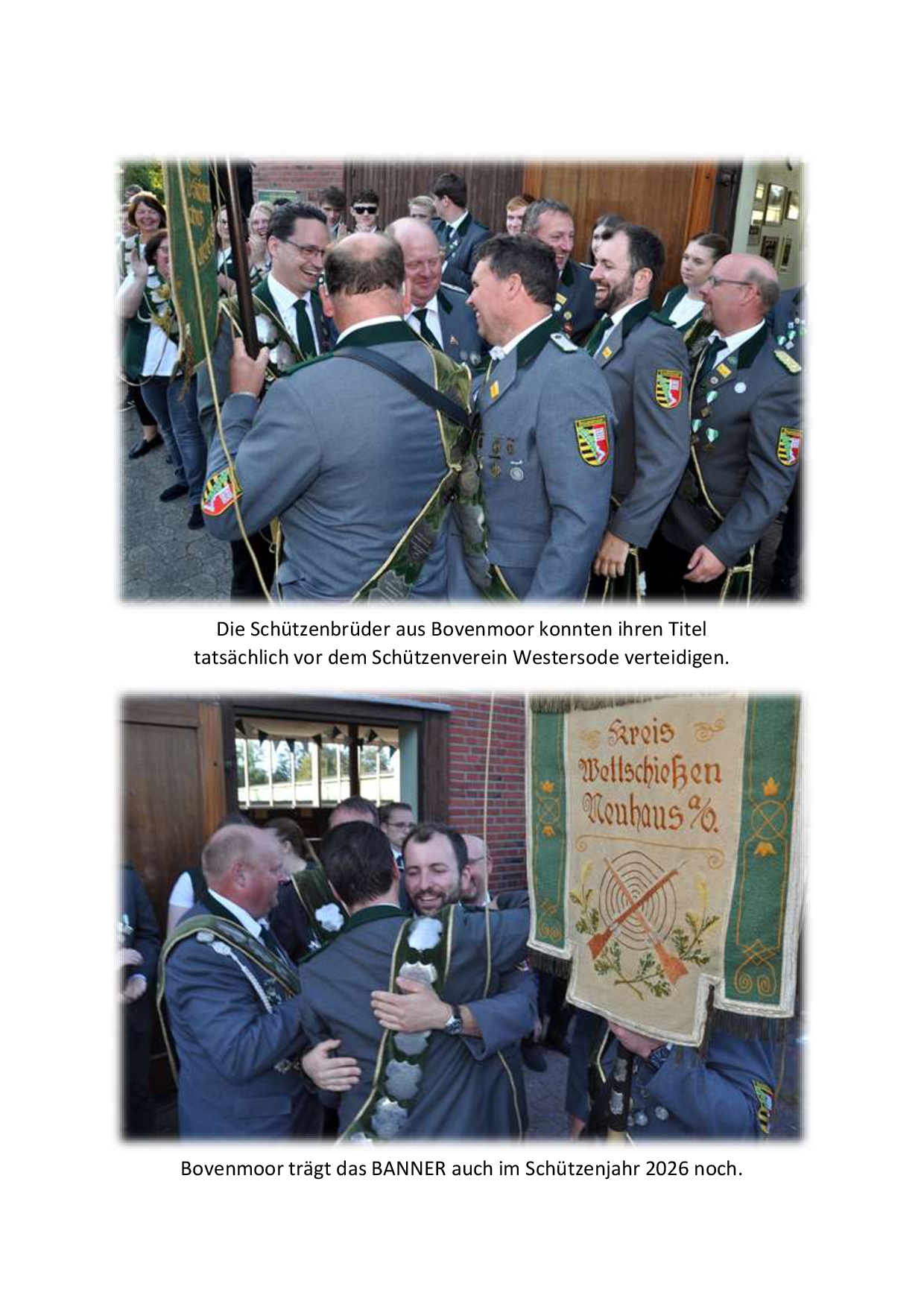 Bei den Herren wurde es zum Abend hin widererwartend sehr spannend. Die Titelverteidiger vom SV Bovenmoor und Umgebung mussten mit den Schützen vom SV Westersode das Banner ausschießen (beide 816 Ringe). Am Ende ging das Banner erneut nach Bovemmoor und die Sensation war perfekt. Den dritten Platz sicherten sich die Gastgeber vom SV Westerhamm (811 Ringe). Bester Schütze wurde Sven Röndigs vom SV Osten.
