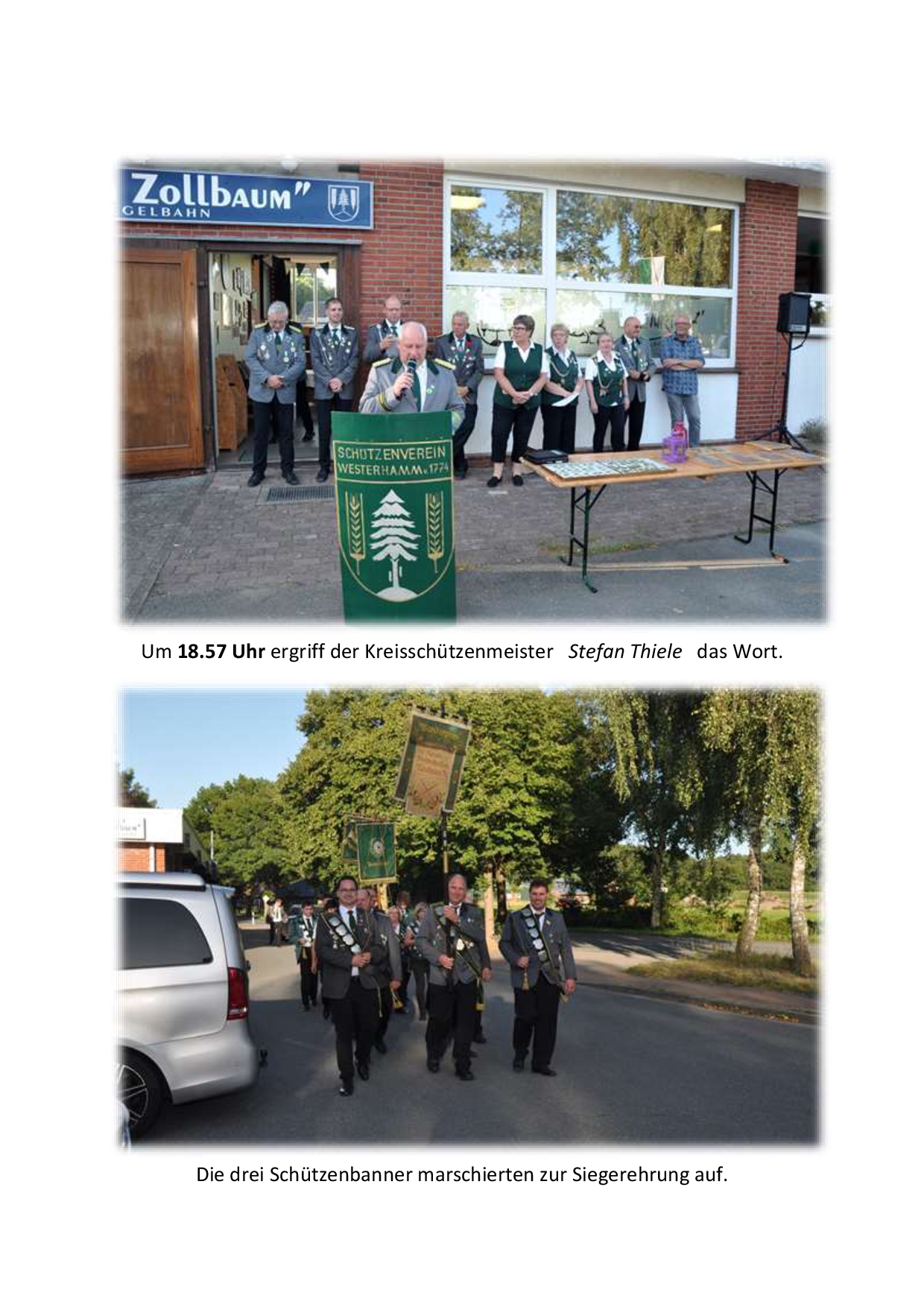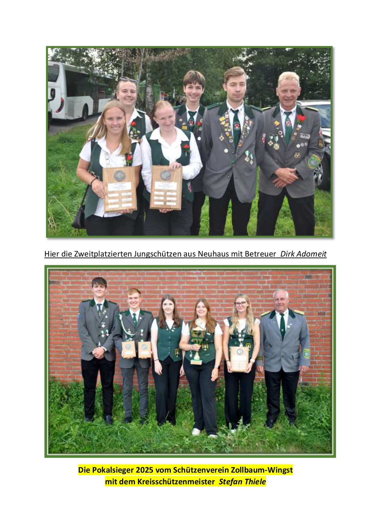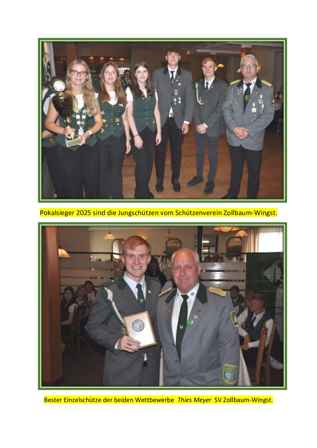 Vor der Siegerehrung lobten Patrick Pawlowski als Bürgermeister der Gemeinde Wingst sowie der stellv. Samtgemeindebürgermeister der SG Land Hadeln Wolfgang Hess das ehrenamtliche Engagement aller hiesigen Schützenvereine. Sie bilden die Grundlage für gesellschaftlichen Zusammenhalt und sind eine wichtige Basis auch für die Jugendarbeit in der Region. Anschließend kürten der Kreisschützenmeister Stefan Thiele und sein Vorstandkollegium die Sieger des Tages. Den Gastgebern vom SV Westerhamm und Zollbaum-Wingst sowie dem Team des Gasthauses Butt – Lindenwirt am Zollbaum wurde mit großem Applaus gedankt.