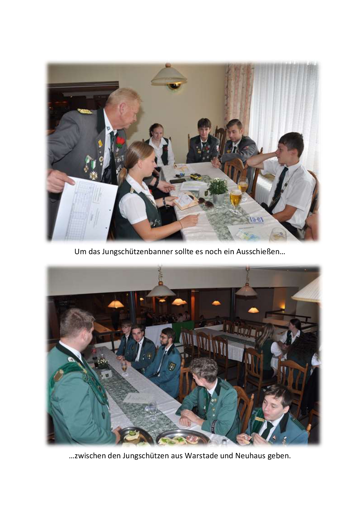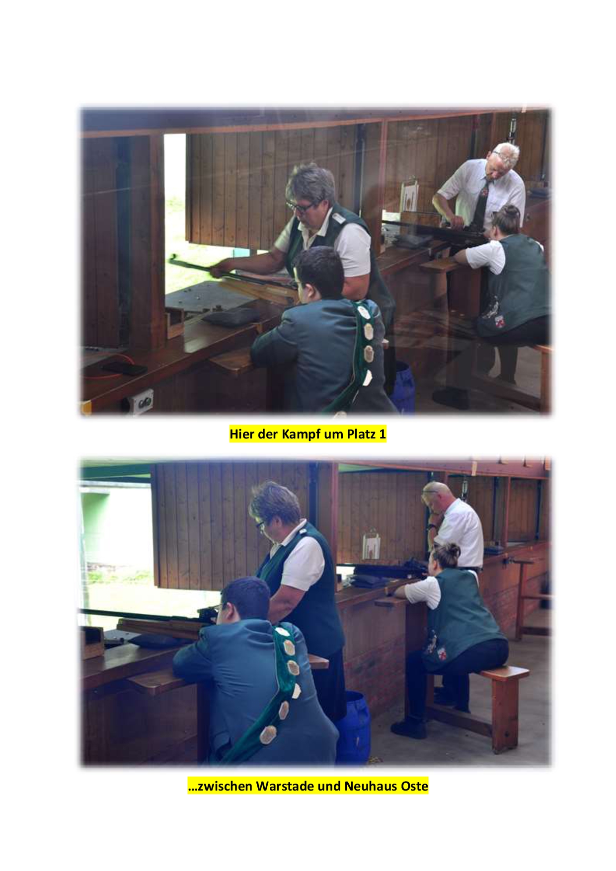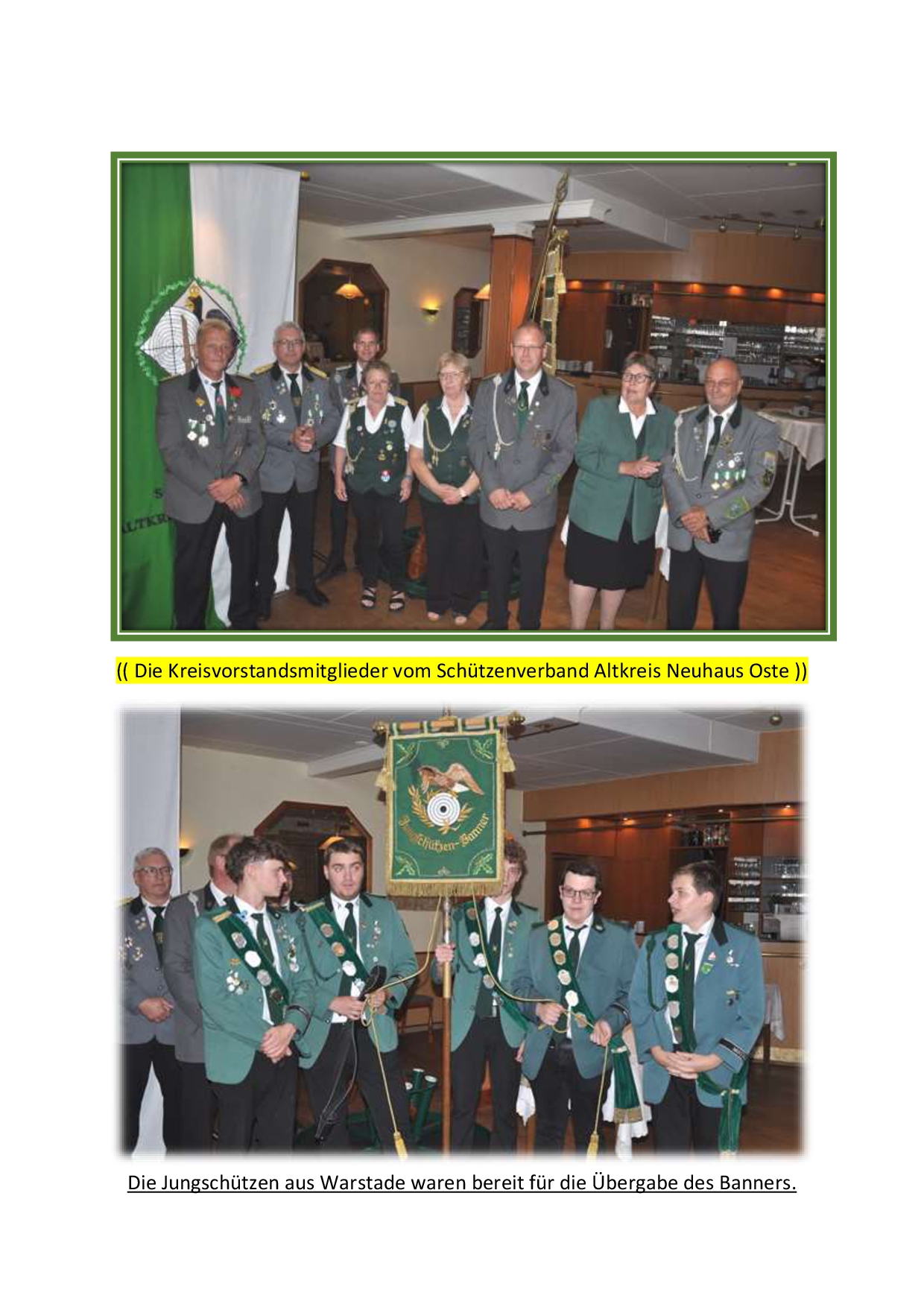 Das Kreiswettschießen um die zu Kreisbanner der jeweiligen Sparten, war auch in diesem Jahr wieder der Höhepunkt im Schützenjahr des Schützenverbandes. Am Ende des ersten Tages konnten sich die Titelverteidiger vom Schützenverein Warstade nach einem spannenden Ausschießen mit den Jungschützen aus Neuhaus (Oste) das Jungschützenbanner sichern. Parallel hierzu schossen die Junioren ihren Jungschützenpokal in der Anschlagsart stehend aufgelegt aus. Dieser musste nicht weit reisen und ging an den Schützenverein Zollbaum-Wingst. Der erfolgreichster Jungschütze des Tages wurde Thies Meyer.