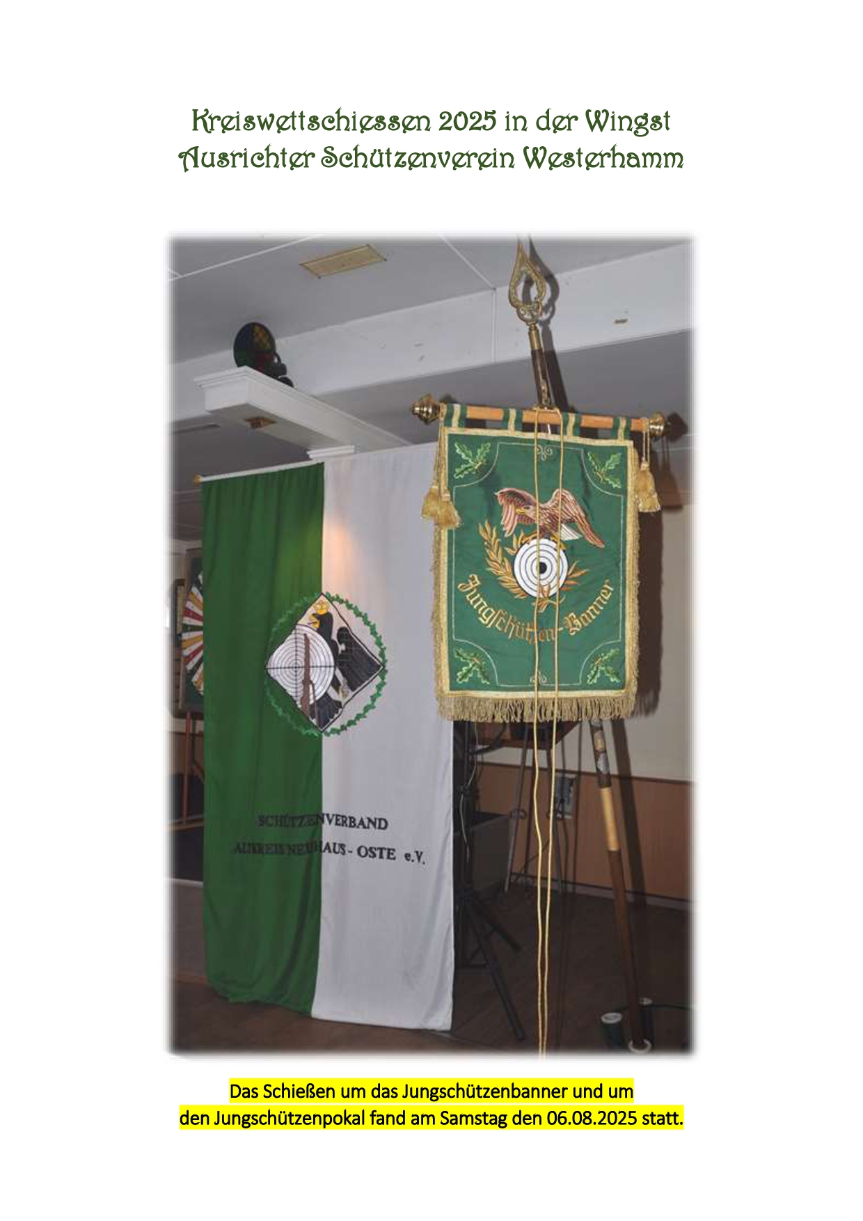 Am Samstag und Sonntag, den 16. und 17. August 2025, veranstaltete der Schützenverband Altkreis Neuhaus-Oste e. V. zum 88. Mal sein Kreiswettschießen. In Zusammenarbeit mit dem Schützenverein Westerhamm, als diesjähriger Ausrichter, wurden die Wettkämpfe auf der Schießanlage des Schützenvereins Zollbaum-Wingst durchgeführt.