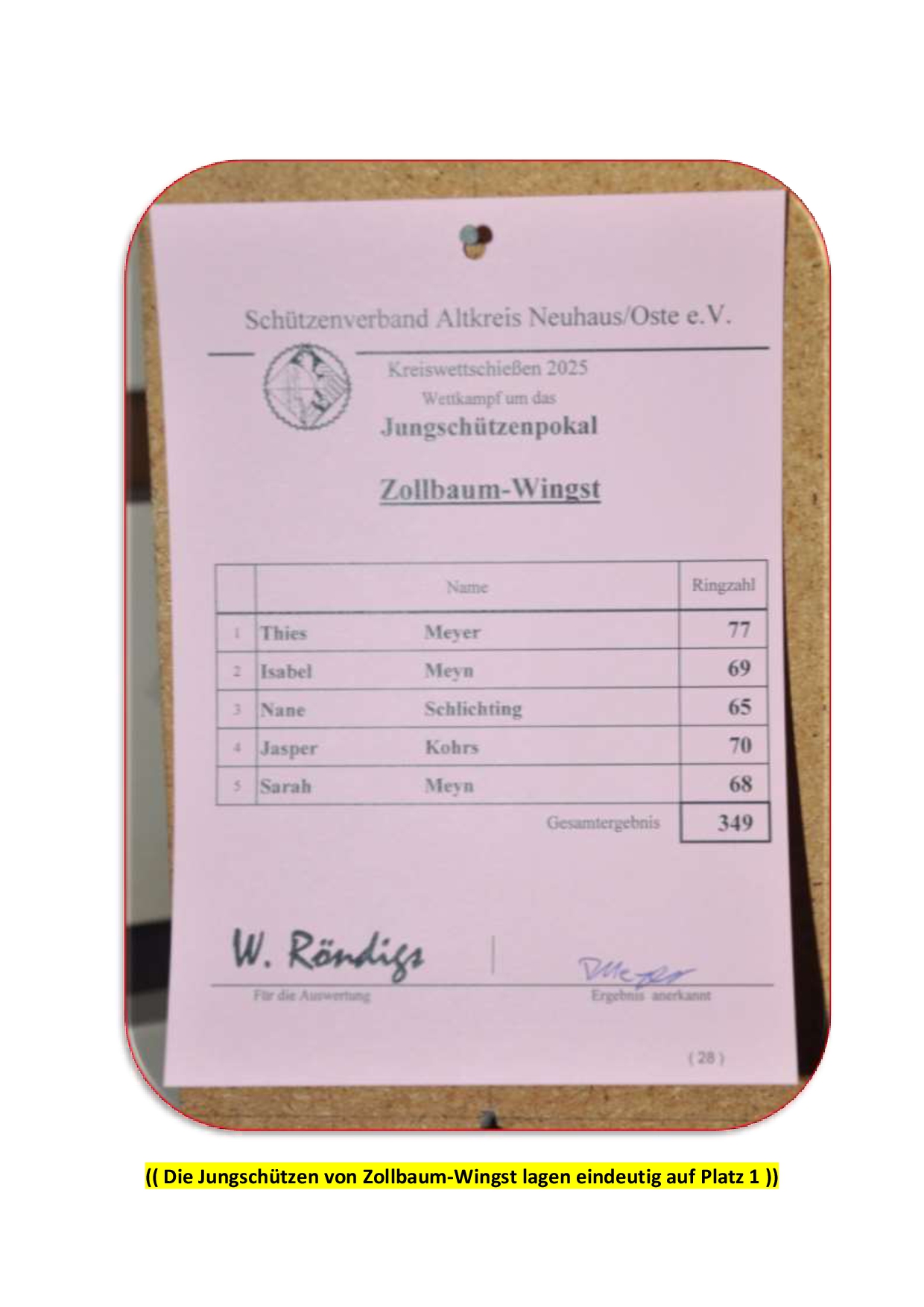 Einzelsieger mit 100 Ringen beim Banner wurde Malte Geppert vom SV Ahrensfluchtermoor. Thies Meyer vom SV Zollbaum wurde Bester beim Jungschützenpokal. Auch den Gesamttagessieg konnte sich Thies Meyer sichern!