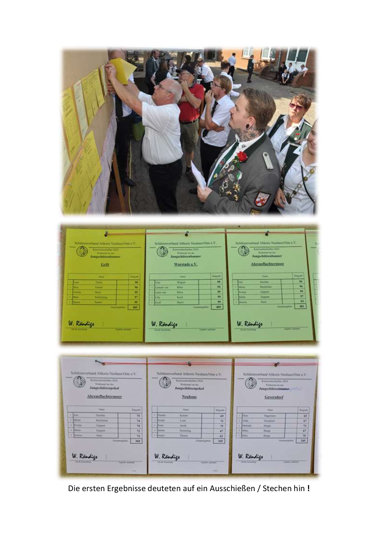 Der erste Tag ist um und die ersten Sieger stehen fest. Die Jungschützen des gastgebenden Vereins Warstade gewinnen das Jungschützenbanner nach einem spannenden Ausschießen und der Jungschützenpokal geht zum Nachbarverein Ahrensfluchtermoor!