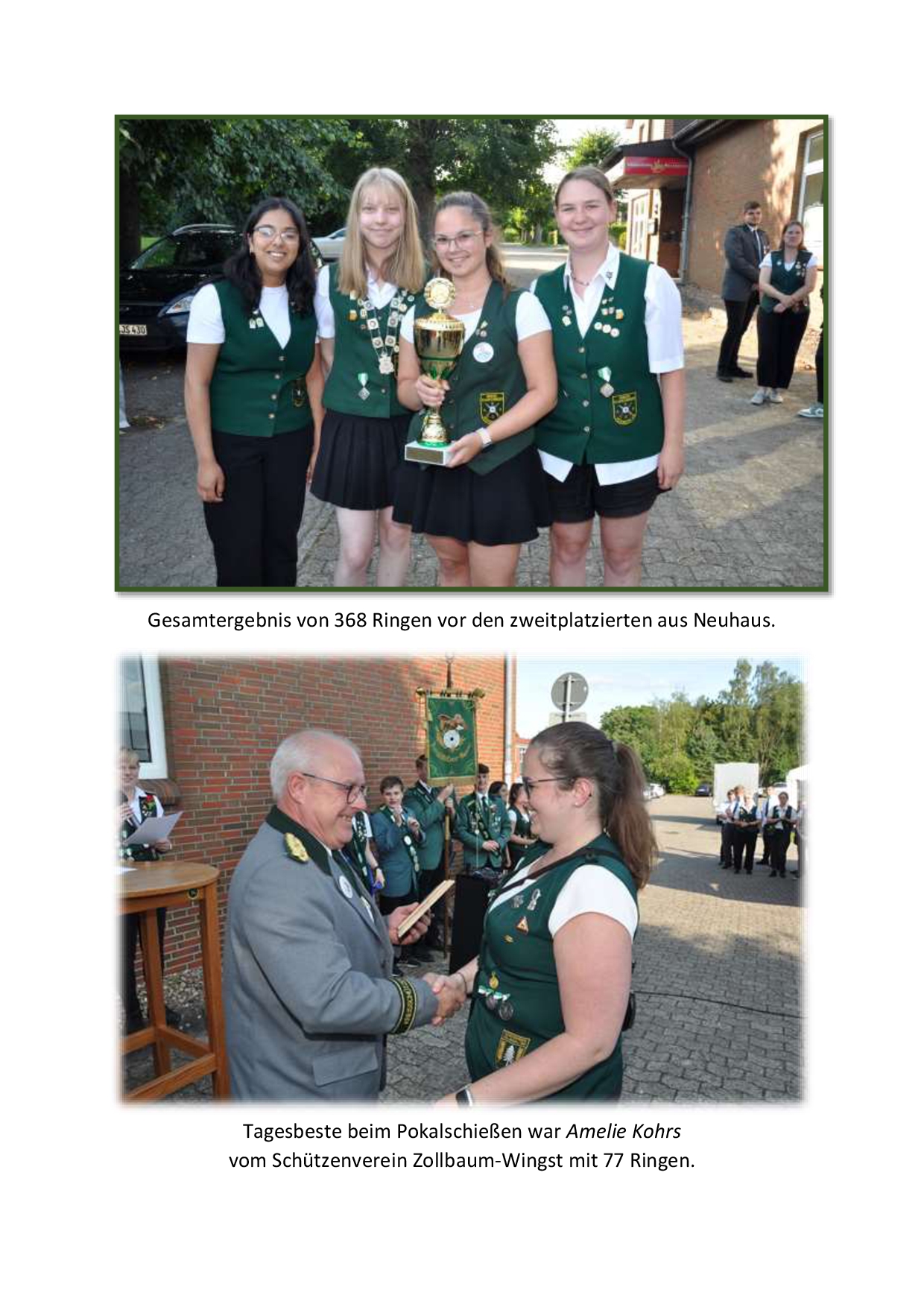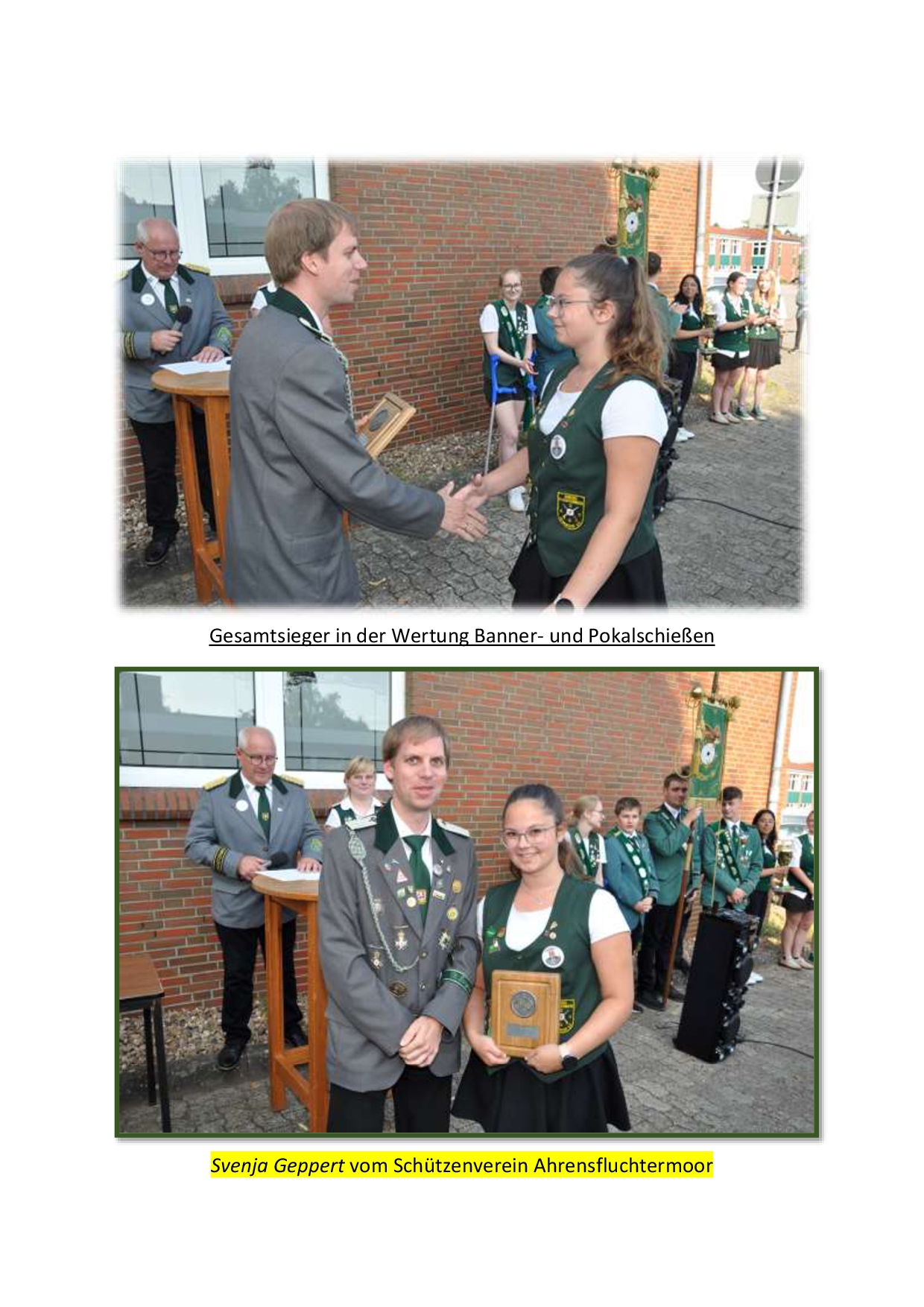 Einzelsiegerin beim Banner wurde Merle Katt vom SV Weißenmoor. Amelie Kohrs vom SV Zollbaum wurde Beste beim Jungschützenpokal. Der Gesamttagessieg ging an Svenja Geppert vom SV Ahrensfluchtermoor!
